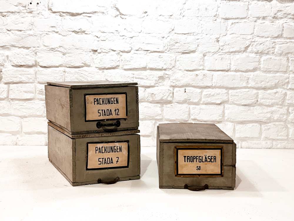 Alles, was man sonst noch so braucht: Austernkörbe für Feuerholz, Fleischerhaken als Garderobenleiste, Ballonflaschen als Blumenvasen, Schultafeln zum Lernen, Fabrikuhren von SIEMENS, PRAGOTRON, AEG, ELFEMA, CHRONOPAS, TN, SEL, SIEMENS & HALSKE, JUNDES, RFT, JUNHHANS, SIMPLEX und IBM für die Pünktlichkeit, Holzkisten für Spielzeug, Metallkisten für Bettwäsche, Medizinbälle zum Sport, Apothekerdosen für Krimskrams, Holzleitern für Handtücher und und und…
