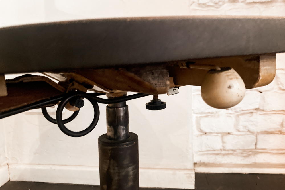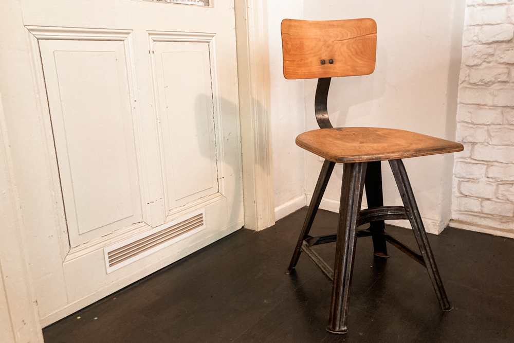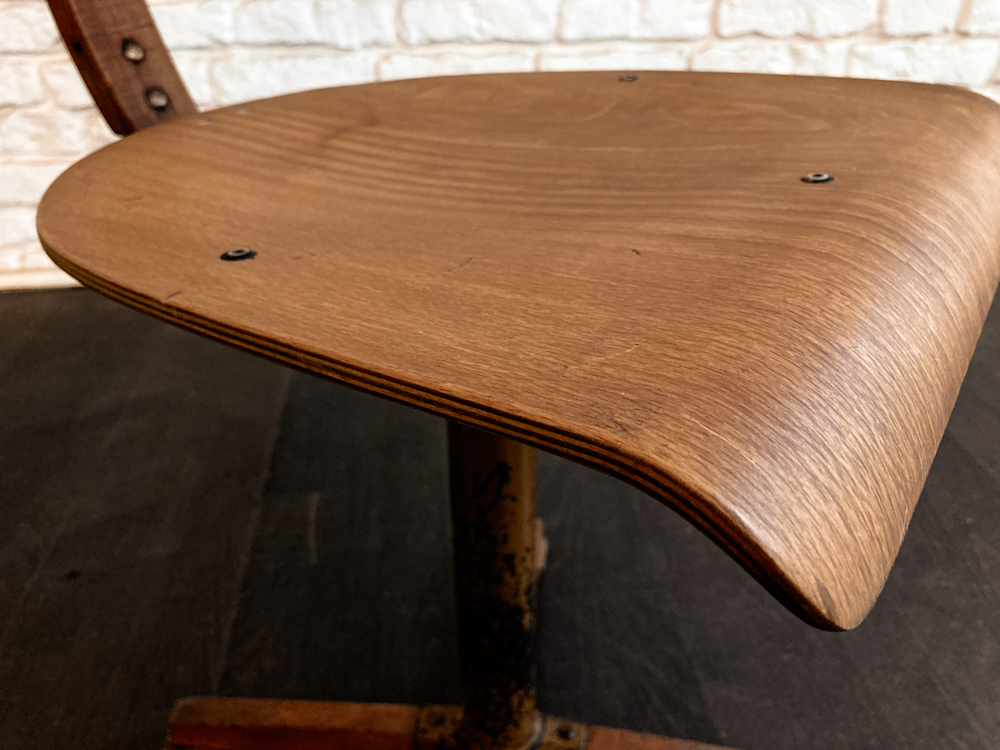 Werkstatthocker von ROWAC, AMA, BRUNO MÄDLER – Bürostühle von AMA ELASTIC, POLSTERGLEICH, BOMBENSTABIL, THONET – Turnmatten aus Leder – Architektenstühle von FRISO CRAMER – Schulstühle von MULLCA, VS – Arztstühle von LAUCKNER, ADMI – Metallstühle von TOLIX, FIBROCIT, CHAISE NICOLLE – gekürzte Turnböcke – Trainerbänke – Parkbänke von FRITZ KÜHN… und natürlich viele Sitzmöbel von unbekannten Herstellern, grossartig gebaut und mit einzigartigem Charme!