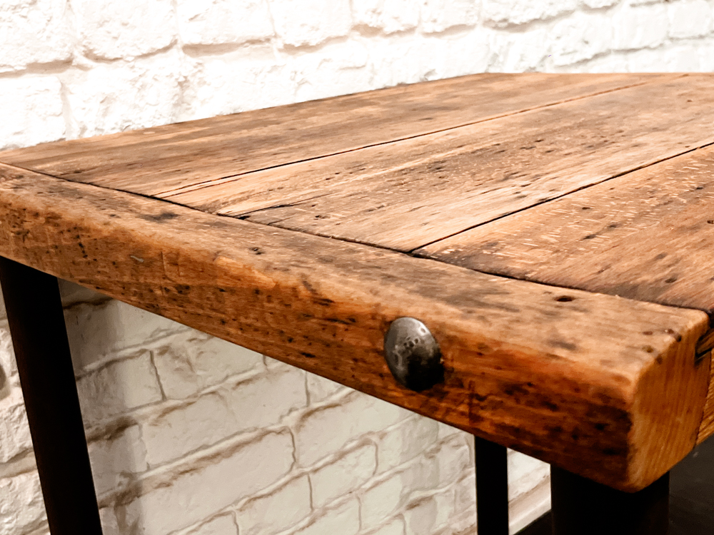 Werktische werden zu Esstisch-Unikaten, Industriepaletten zu Couchtischen, Hobelbänke zu Hausbars, Werkbänke zu Küchentresen, Maschinentische zu Spültischen, Kantinenwägen zu Sideboards, Rollwägen zu Anrichten, Maschinentische zu Beistelltischen, Schneidertische zu Esstischen, Klappwerkbänke zu Schreibtischen, Labortische zu Präsentations- Tischen, Arzttische zu Nachttischen, alte Holzbohlen zu Sonderwunsch-Tischen – alte Tische sind für alles toll!